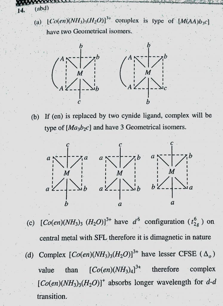 The correct option(s) regarding the complex (Co(en) (NH3)3(H2O)) 3+ : (en = H2NCH2CH2NH2) is (are) The correct option(s) regarding the complex (Co(en) (NH3)3(H2O)) 3+ : (en = H2NCH2CH2NH2) is (are) December 6, 2020 Category: Uncategorised (JEE Advanced Physics by BM Sharma + GMP Solutions) , Facebook Messenger WhatsApp Share this:TwitterFacebook Related