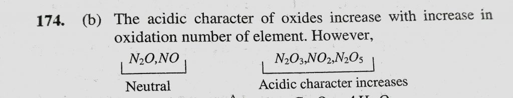 The correct order of acidic nature of oxides is in the order (a) NO < N2O < N2O3 < NO2 < N2O5 (b) N2O < NO < N2O3 < NO2 < N2O5 The correct order of acidic nature of oxides is in the order (a) NO < N2O < N2O3 < NO2 < N2O5 (b) N2O < NO < N2O3 < NO2 < N2O5 November 23, 2020 Category: Uncategorised (JEE Advanced Physics by BM Sharma + GMP Solutions) , Facebook Messenger WhatsApp Share this:TwitterFacebook Related