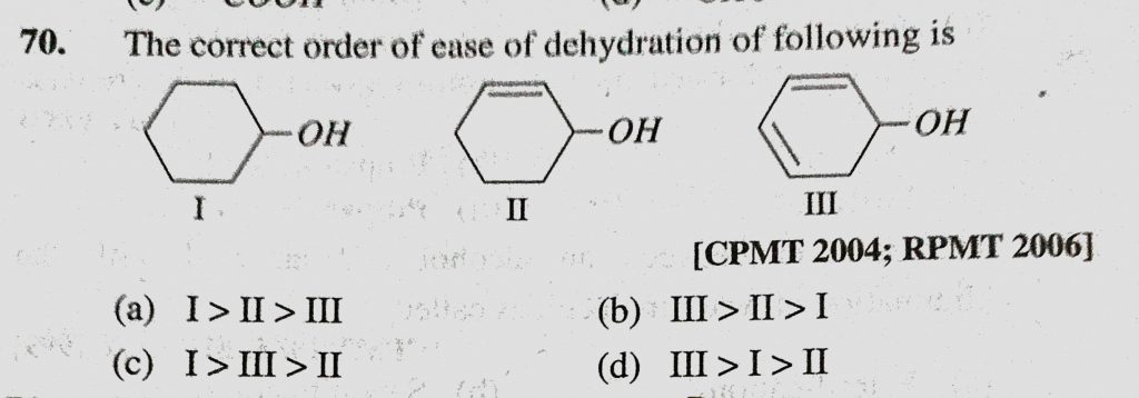 The correct order of ease of dehydration of following is (a) I > II > III (b) III > II > I (c) I > III > II (d) III > I >II The correct order of ease of dehydration of following is (a) I > II > III (b) III > II > I (c) I > III > II (d) III > I >II February 11, 2021 Category: Uncategorised (JEE Advanced Physics by BM Sharma + GMP Solutions) , Facebook Messenger WhatsApp Share this:TwitterFacebook Related