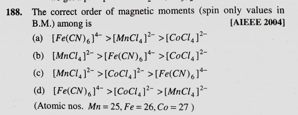 The correct order of magnetic moments (spin only values in B. M. ) among is The correct order of magnetic moments (spin only values in B. M. ) among is December 2, 2020 Category: Uncategorised (JEE Advanced Physics by BM Sharma + GMP Solutions) , Facebook Messenger WhatsApp Share this:TwitterFacebook Related
