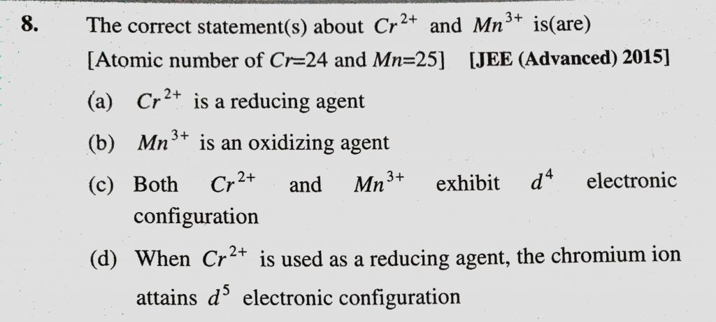 The correct statement(s) about Cr 2 + and Mn 3+ is (are) (Atomic number of Cr = 24 and Mn = 25) The correct statement(s) about Cr 2 + and Mn 3+ is (are) (Atomic number of Cr = 24 and Mn = 25) December 3, 2020 Category: Uncategorised (JEE Advanced Physics by BM Sharma + GMP Solutions) , Facebook Messenger WhatsApp Share this:TwitterFacebook Related