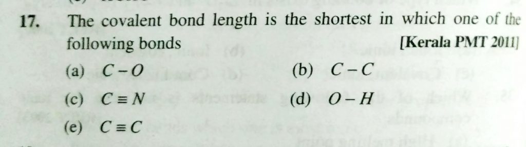 THe covalent bond length is the shortest in which one of the following bonds (a) C – O (b) C – C (D) O – H THe covalent bond length is the shortest in which one of the following bonds (a) C - O (b) C - C (D) O - H December 1, 2020 Category: Uncategorised (JEE Advanced Physics by BM Sharma + GMP Solutions) , Facebook Messenger WhatsApp Share this:TwitterFacebook Related