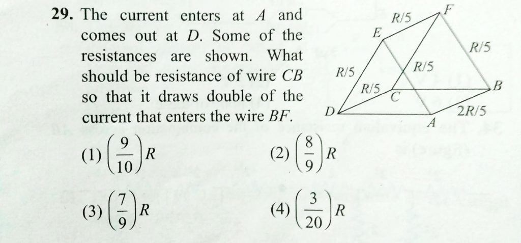 The current enters at A and comes out at D. Some of the resistance are shown. What should be resistance of wire CB so that it draws double of the current that enters the wire BF. The current enters at A and comes out at D. Some of the resistance are shown. What should be resistance of wire CB so that it draws double of the current that enters the wire BF. November 11, 2020 Category: Uncategorised (JEE Advanced Physics by BM Sharma + GMP Solutions) , Facebook Messenger WhatsApp Share this:TwitterFacebook Related