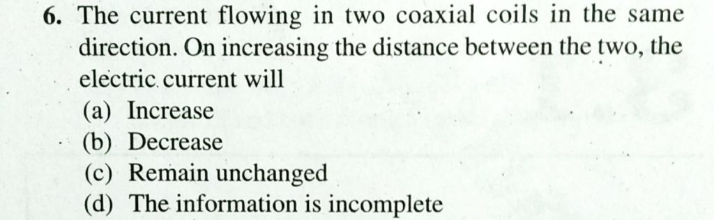 The current flowing in two coaxial coils in the same direction. On increasing the distance between the two, the electric current will The current flowing in two coaxial coils in the same direction. On increasing the distance between the two the electric current will September 9, 2020 Category: Uncategorised (JEE Advanced Physics by BM Sharma + GMP Solutions) , Facebook Messenger WhatsApp Share this:TwitterFacebook Related