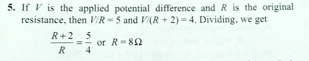 The current in a simple series cirucit is 5A. When an additional resistance of 2Ω is introduced, the current is reduced to 4A. Calculate the resistance o fthe original circuit. Assume that the applied potential difference is the same in both the cses.