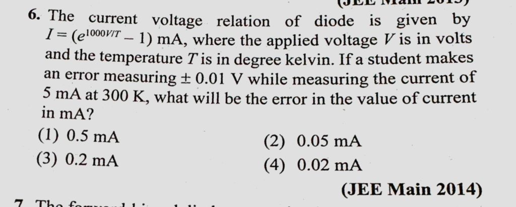 The current votage relation of diode is given by I = (e^ 1000v/t – 1) mA, where the applied voltage V is in volts and the temperature T is in degree kelvin. If a student makes an error The current votage relation of diode is given by I = (e^ 1000v/t - 1) mA where the applied voltage V is in volts and the temperature T is in degree kelvin. If a student makes an error October 22, 2020 Category: Uncategorised (JEE Advanced Physics by BM Sharma + GMP Solutions) , Facebook Messenger WhatsApp Share this:TwitterFacebook Related