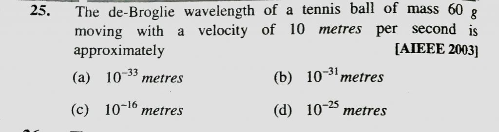 The de – Broglie wavelength of a tennis ball of mass 60 g moving with a velocity of 10 metres per second is approximately The de - Broglie wavelength of a tennis ball of mass 60 g moving with a velocity of 10 metres per second is approximately November 28, 2020 Category: Uncategorised (JEE Advanced Physics by BM Sharma + GMP Solutions) , Facebook Messenger WhatsApp Share this:TwitterFacebook Related