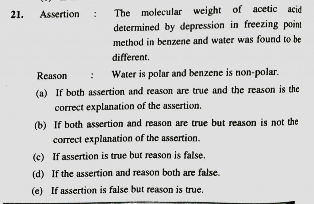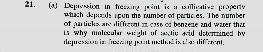 Assertion: The molecular weight of acetic acid determined by depression in freezing point method in benzene and water was found to be different.Reason : Water is polar and benzene is non-polar Assertion: The molecular weight of acetic acid determined by depression in freezing point method in benzene and water was found to be different.Reason : Water is polar and benzene is non-polar December 14, 2020 Category: Uncategorised (JEE Advanced Physics by BM Sharma + GMP Solutions) , Facebook Messenger WhatsApp Share this:TwitterFacebook Related