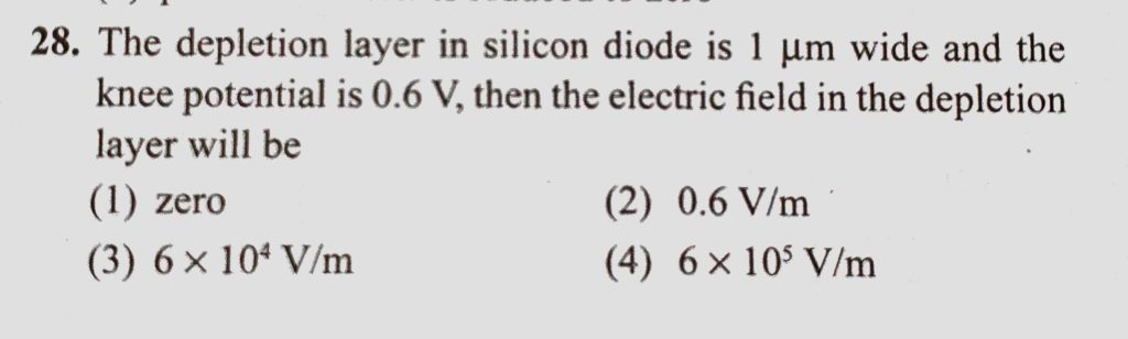 The depletion layer in silicon diode is 1 mu m wide and the knee potential is 0.6 V, then the electric field in the depletion layer will be The depletion layer in silicon diode is 1 mu m wide and the knee potential is 0.6 V then the electric field in the depletion layer will be October 21, 2020 Category: Uncategorised (JEE Advanced Physics by BM Sharma + GMP Solutions) , Facebook Messenger WhatsApp Share this:TwitterFacebook Related