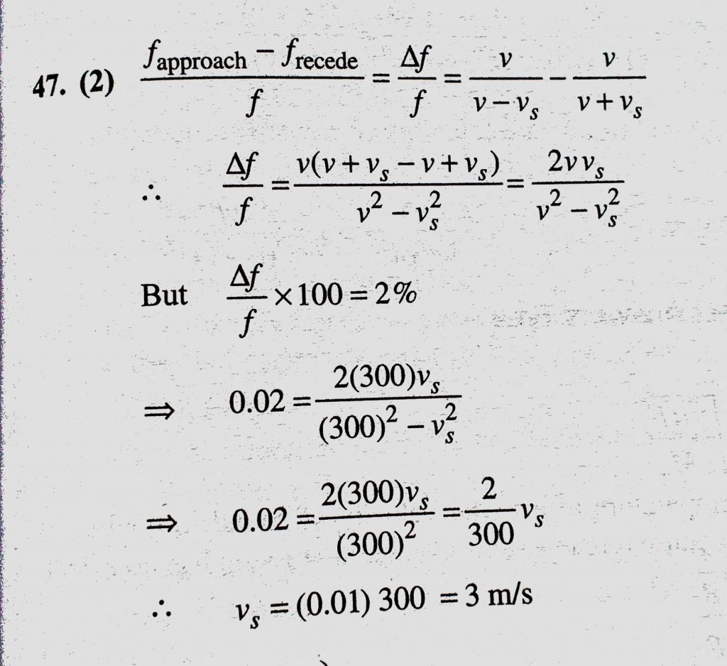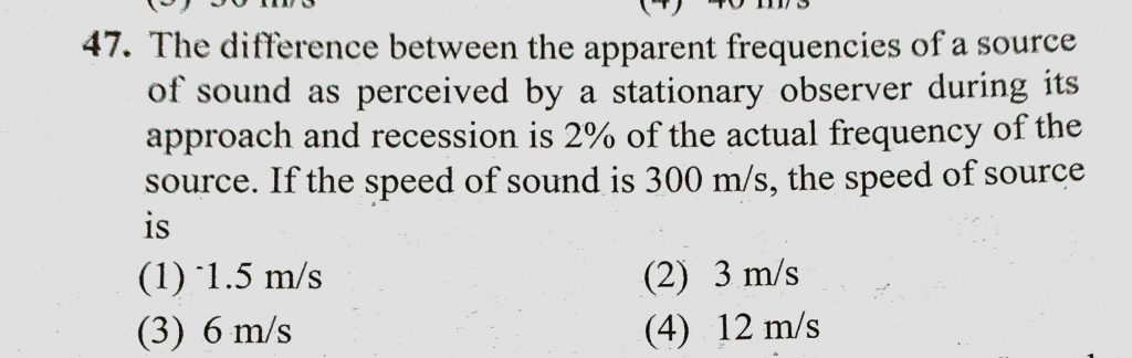 The difference between the apparent frequencies of a source of sound as perceived by a stationary observer during its approach and recession is 2% of the actual frequency of the source. The difference between the apparent frequencies of a source of sound as perceived by a stationary observer during its approach and recession is 2% of the actual frequency of the source. November 7, 2020 Category: Uncategorised (JEE Advanced Physics by BM Sharma + GMP Solutions) , Facebook Messenger WhatsApp Share this:TwitterFacebook Related