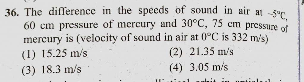 The difference in the speeds of sound in air at -5 C, 60 cm pressure of mercury and 30 C, 75 cm pressure of mercury is (velocity of sound in air at 0 C is 332 m/s) 60 cm pressure of mercury and 30 C 75 cm pressure of mercury is (velocity of sound in air at 0 C is 332 m/s) The difference in the speeds of sound in air at -5 C November 7, 2020 Category: Uncategorised (JEE Advanced Physics by BM Sharma + GMP Solutions) , Facebook Messenger WhatsApp Share this:TwitterFacebook Related