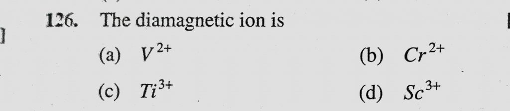 The dimagnetic ion is (a) V 2+ (b) Cr 2+ (c) Ti 3+ (d) Sc 3+ The dimagnetic ion is (a) V 2+ (b) Cr 2+ (c) Ti 3+ (d) Sc 3+ November 30, 2020 Category: Uncategorised (JEE Advanced Physics by BM Sharma + GMP Solutions) , Facebook Messenger WhatsApp Share this:TwitterFacebook Related
