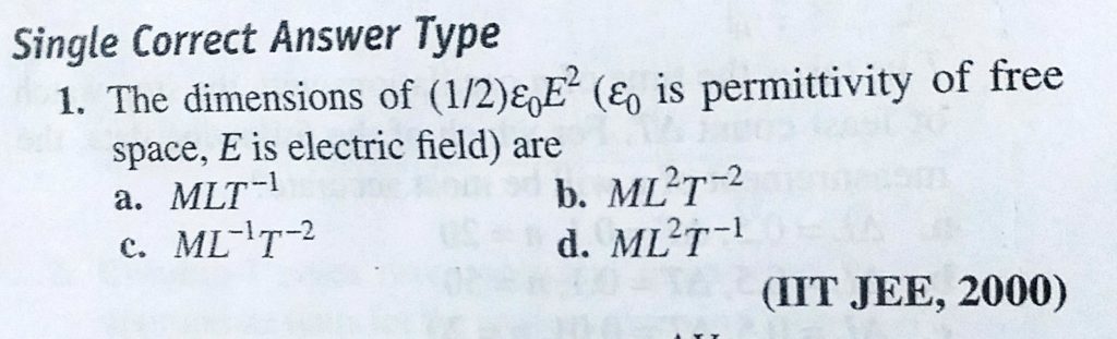 The dimensions of (1/2)e0E^2 (e0 is permittivity of free space, E is electric field ) are E is electric field ) are The dimensions of (1/2)e0E^2 (e0 is permittivity of free space September 15, 2020 Category: Uncategorised (JEE Advanced Physics by BM Sharma + GMP Solutions) , Facebook Messenger WhatsApp Share this:TwitterFacebook Related