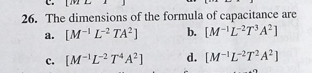The dimensions of the formula of capacitance are The dimensions of the formula of capacitance are September 15, 2020 Category: Uncategorised (JEE Advanced Physics by BM Sharma + GMP Solutions) , Facebook Messenger WhatsApp Share this:TwitterFacebook Related