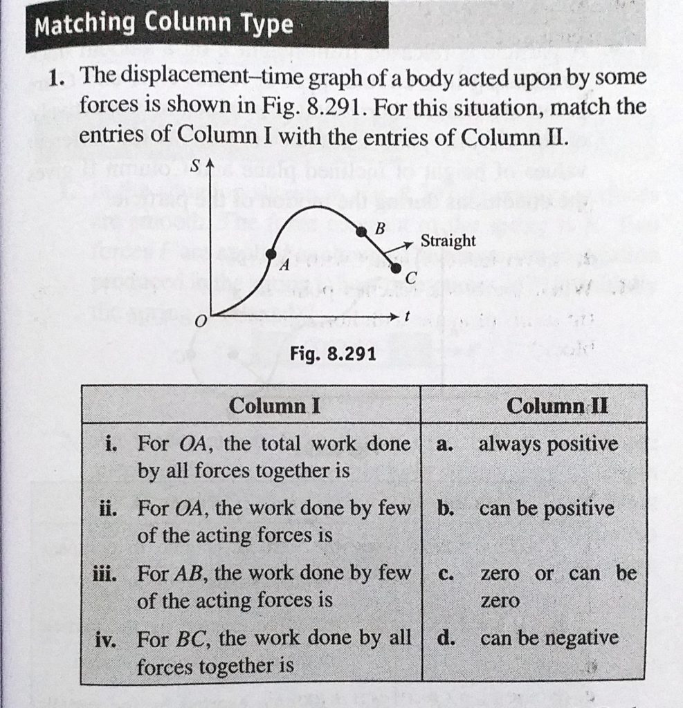 The displacement-time graph of a body acted upon by some forces is shown in Fig. 8.291. For this situation, match the entries of Column 1 with the entries of Column 2. match the entries of Column 1 with the entries of Column 2. The displacement-time graph of a body acted upon by some forces is shown in Fig. 8.291. For this situation October 4, 2020 Category: Uncategorised (JEE Advanced Physics by BM Sharma + GMP Solutions) , Facebook Messenger WhatsApp Share this:TwitterFacebook Related