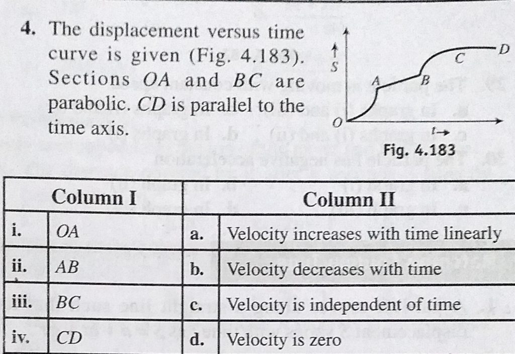 The displacement versus time curve is given sections OA and BC are parabolic. CD is parallel to the time axis. The displacement versus time curve is given sections OA and BC are parabolic. CD is parallel to the time axis. September 19, 2020 Category: Uncategorised (JEE Advanced Physics by BM Sharma + GMP Solutions) , Facebook Messenger WhatsApp Share this:TwitterFacebook Related