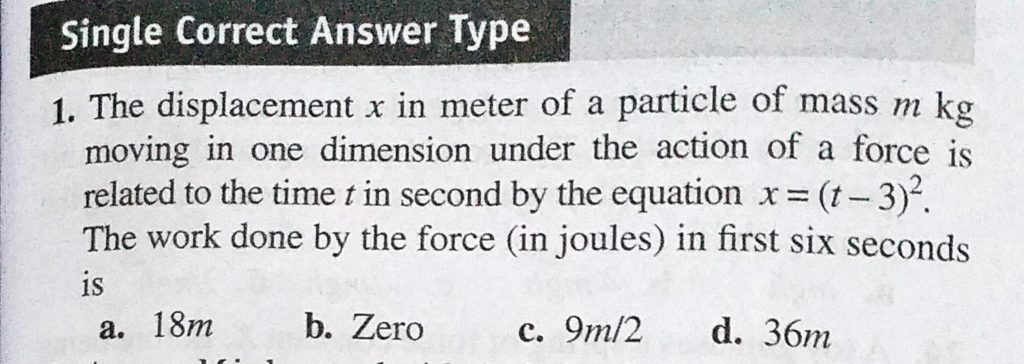 The displacement x in meter of a particle of mass m kg moving in one dimension under the action of a force is related to the time t in second by the equation x = ( t – 3 )^2. The work done by the force A bob of mass m is projected with a horizontal velocity v = root gl/2 as shown in Fig. 8.224. In consequence it moves in a circular path in a vertical plane by the inextensible string which passes October 3, 2020 Category: Uncategorised (JEE Advanced Physics by BM Sharma + GMP Solutions) , Facebook Messenger WhatsApp Share this:TwitterFacebook Related