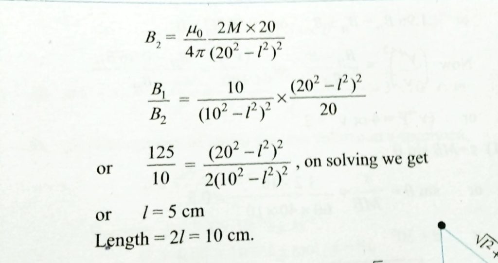 The distance of two points on the axis of a magnet from its centre is 10 cm and 20 cm repectively. The ratio of magnatic intensity at these points is 12. 5: 1. The length of the megnet will be The distance of two points on the axis of a magnet from its centre is 10 cm and 20 cm repectively. The ratio of magnatic intensity at these points is 12. 5: 1. The length of the megnet will be October 18, 2020 Category: Uncategorised (JEE Advanced Physics by BM Sharma + GMP Solutions) , Facebook Messenger WhatsApp Share this:TwitterFacebook Related