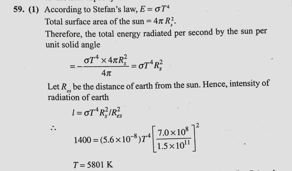 The earth receives on its surface radiation from the sun at the rate of 1400 W/m^2. The distance of the centre of the sun from the surface of the earth is 1.5 * 10^11 m and the radius The earth receives on its surface radiation from the sun at the rate of 1400 W/m^2. The distance of the centre of the sun from the surface of the earth is 1.5 * 10^11 m and the radius October 25, 2020 Category: Uncategorised (JEE Advanced Physics by BM Sharma + GMP Solutions) , Facebook Messenger WhatsApp Share this:TwitterFacebook Related