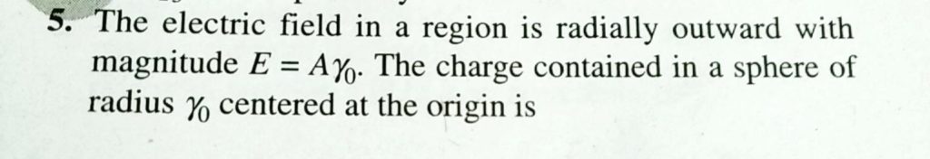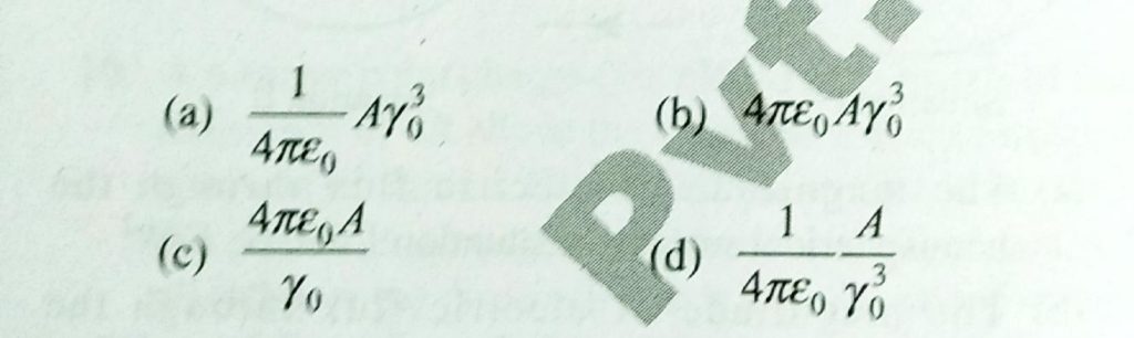 The electric field in a region is radially outward with magnitude E = Ay0. The charge contained in a sphere of radius y0 centered at the origin is The electric field in a region is radially outward with magnitude E = Ay0. The charge contained in a sphere of radius y0 centered at the origin is September 17, 2020 Category: Uncategorised (JEE Advanced Physics by BM Sharma + GMP Solutions) , Facebook Messenger WhatsApp Share this:TwitterFacebook Related