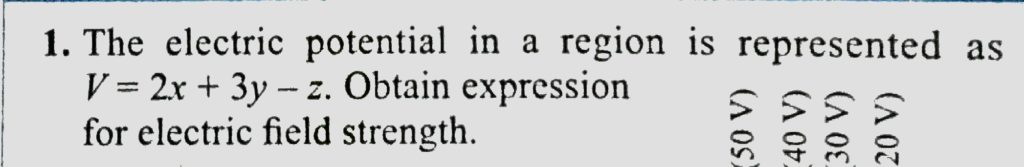 The electric potential in a region is represented as v=2x+3y-z. Obtain expression for electric field strength. The electric potential in a region is represented as v=2x+3y-z. Obtain expression for electric field strength. November 1, 2020 Category: Uncategorised (JEE Advanced Physics by BM Sharma + GMP Solutions) , Facebook Messenger WhatsApp Share this:TwitterFacebook Related