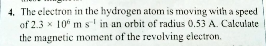 The electron in the hydrogen atom is moving with a speed of 2.3 x 10^6 m/s in an orbit of radius 0.53 A. Calculate the magnetic moment of the revolving electron. The electron in the hydrogen atom is moving with a speed of 2.3 x 10^6 m/s in an orbit of radius 0.53 A. Calculate the magnetic moment of the revolving electron. October 18, 2020 Category: Uncategorised (JEE Advanced Physics by BM Sharma + GMP Solutions) , Facebook Messenger WhatsApp Share this:TwitterFacebook Related