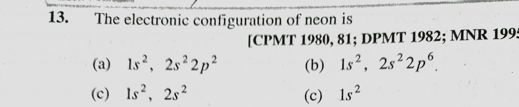 The electronic configuration of neon is 1s2, 2s2 2p2 (b) 1s2, 2s2 2p6 2s2 2p2 (b) 1s2 2s2 2p6 The electronic configuration of neon is 1s2 November 25, 2020 Category: Uncategorised (JEE Advanced Physics by BM Sharma + GMP Solutions) , Facebook Messenger WhatsApp Share this:TwitterFacebook Related