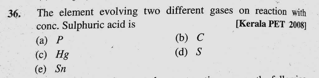 The element evolving two different gases on reaction with conc. Sulphuric acid is (a) P (b) C (c) Hg (d) S (e) sn The element evolving two different gases on reaction with conc. Sulphuric acid is (a) P (b) C (c) Hg (d) S (e) sn November 17, 2020 Category: Uncategorised (JEE Advanced Physics by BM Sharma + GMP Solutions) , Facebook Messenger WhatsApp Share this:TwitterFacebook Related
