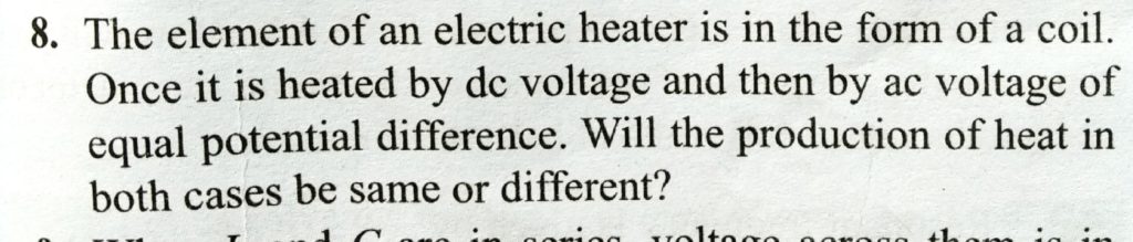 The element of an electric heater is in the form of a coil. Once it is heated by dc volatage and then by ac voltage of equal potential difference. Will the production of heat in both cases be same of different? At very high frequency of ac capacitor behaves like a conductor ( True / False ). October 27, 2020 Category: Uncategorised (JEE Advanced Physics by BM Sharma + GMP Solutions) , Facebook Messenger WhatsApp Share this:TwitterFacebook Related