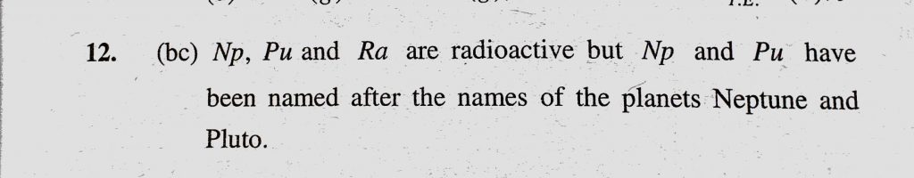 The elements which are radioactive and have been named after the names of planets are (a) Hg (b) Np (c) Pu (d) Ra The elements which are radioactive and have been named after the names of planets are (a) Hg (b) Np (c) Pu (d) Ra November 11, 2020 Category: Uncategorised (JEE Advanced Physics by BM Sharma + GMP Solutions) , Facebook Messenger WhatsApp Share this:TwitterFacebook Related