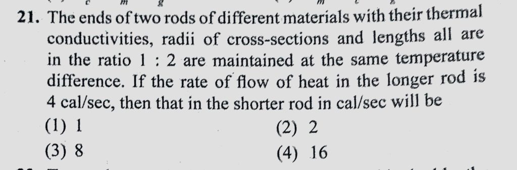The ends of two rods of different materials with their thermal conductivities, radii of cross-sections and lengths all are in the ratio 1 : 2 are maintained at the same temperature difference. radii of cross-sections and lengths all are in the ratio 1 : 2 are maintained at the same temperature difference. The ends of two rods of different materials with their thermal conductivities October 25, 2020 Category: Uncategorised (JEE Advanced Physics by BM Sharma + GMP Solutions) , Facebook Messenger WhatsApp Share this:TwitterFacebook Related