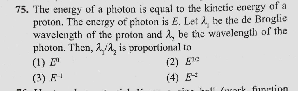 The energy of a photon is equal to the kinetic energy of a proton. The energy of photon is E. Let lemda 1 be the de Broglie wavelength of the proton and lemda 2 be the wavelength of the photon. The energy of a photon is equal to the kinetic energy of a proton. The energy of photon is E. Let lemda 1 be the de Broglie wavelength of the proton and lemda 2 be the wavelength of the photon. October 14, 2020 Category: Uncategorised (JEE Advanced Physics by BM Sharma + GMP Solutions) , Facebook Messenger WhatsApp Share this:TwitterFacebook Related