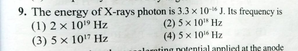 The energy of X – ray photon is 3.3 x 10^-16 J. Its frequency is The energy of X - ray photon is 3.3 x 10^-16 J. Its frequency is October 28, 2020 Category: Uncategorised (JEE Advanced Physics by BM Sharma + GMP Solutions) , Facebook Messenger WhatsApp Share this:TwitterFacebook Related