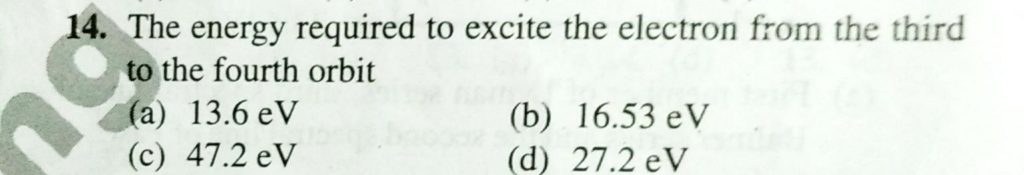 The energy required to excite the electron from the third to the fourth orbit The energy required to excite the electron from the third to the fourth orbit September 14, 2020 Category: Uncategorised (JEE Advanced Physics by BM Sharma + GMP Solutions) , Facebook Messenger WhatsApp Share this:TwitterFacebook Related