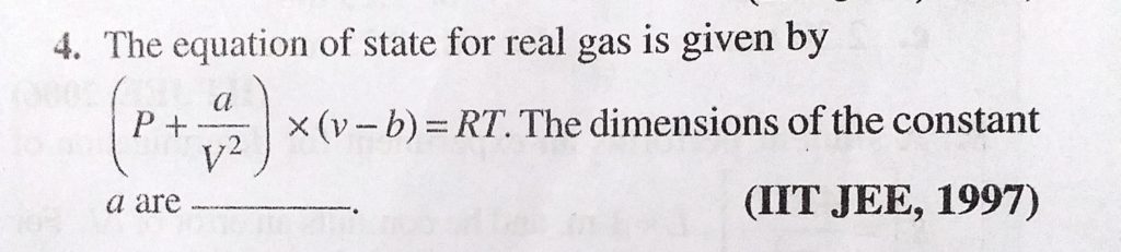 The equation of state for real gas is given by (P + a / v^2) * (v – b) = RT. The dimensions of the constant a are The equation of state for real gas is given by (P + a / v^2) * (v - b) = RT. The dimensions of the constant a are September 15, 2020 Category: Uncategorised (JEE Advanced Physics by BM Sharma + GMP Solutions) , Facebook Messenger WhatsApp Share this:TwitterFacebook Related