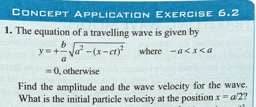 The equation of travelling wave is given by y = +b/a root a^2 – (x-cy)^2 where -a < x < a = 0, otherwise Find the amplitude and the wave velocity for the wave. What is the initial particle otherwise Find the amplitude and the wave velocity for the wave. What is the initial particle The equation of travelling wave is given by y = +b/a root a^2 - (x-cy)^2 where -a < x < a = 0 November 1, 2020 Category: Uncategorised (JEE Advanced Physics by BM Sharma + GMP Solutions) , Facebook Messenger WhatsApp Share this:TwitterFacebook Related