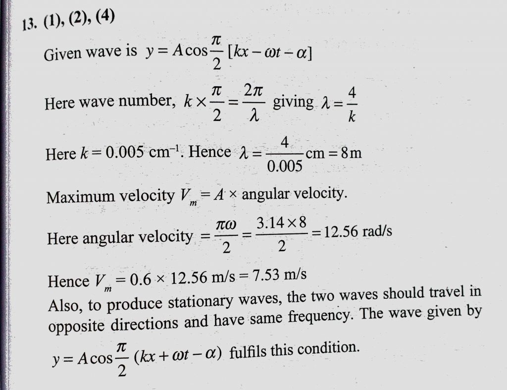 The equation to a transverse wave travelling in a rope is given by y = A cos pie/2 (kx – omega t – alpha) where A = 0.6 m, k = 0.005 cm^-1, omega = 8.0 s^-1 and alpha is a non vanishing constant. k = 0.005 cm^-1 omega = 8.0 s^-1 and alpha is a non vanishing constant. The equation to a transverse wave travelling in a rope is given by y = A cos pie/2 (kx - omega t - alpha) where A = 0.6 m November 5, 2020 Category: Uncategorised (JEE Advanced Physics by BM Sharma + GMP Solutions) , Facebook Messenger WhatsApp Share this:TwitterFacebook Related