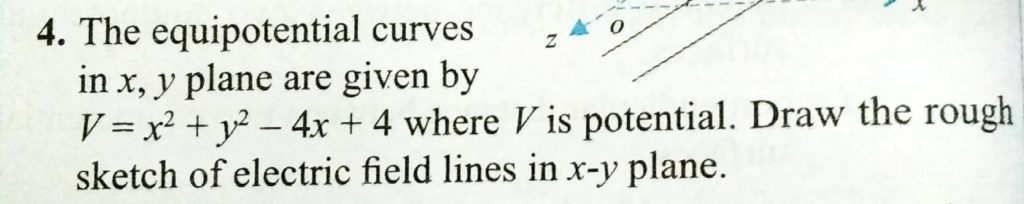 The equipotential curves in x, y plane are given by V = x^2 + y^2 – 4 x + 4 where V is potential. Draw the rough sketch of electric field lines in xy plane. The equipotential curves in x y plane are given by V = x^2 + y^2 - 4 x + 4 where V is potential. Draw the rough sketch of electric field lines in xy plane. November 1, 2020 Category: Uncategorised (JEE Advanced Physics by BM Sharma + GMP Solutions) , Facebook Messenger WhatsApp Share this:TwitterFacebook Related