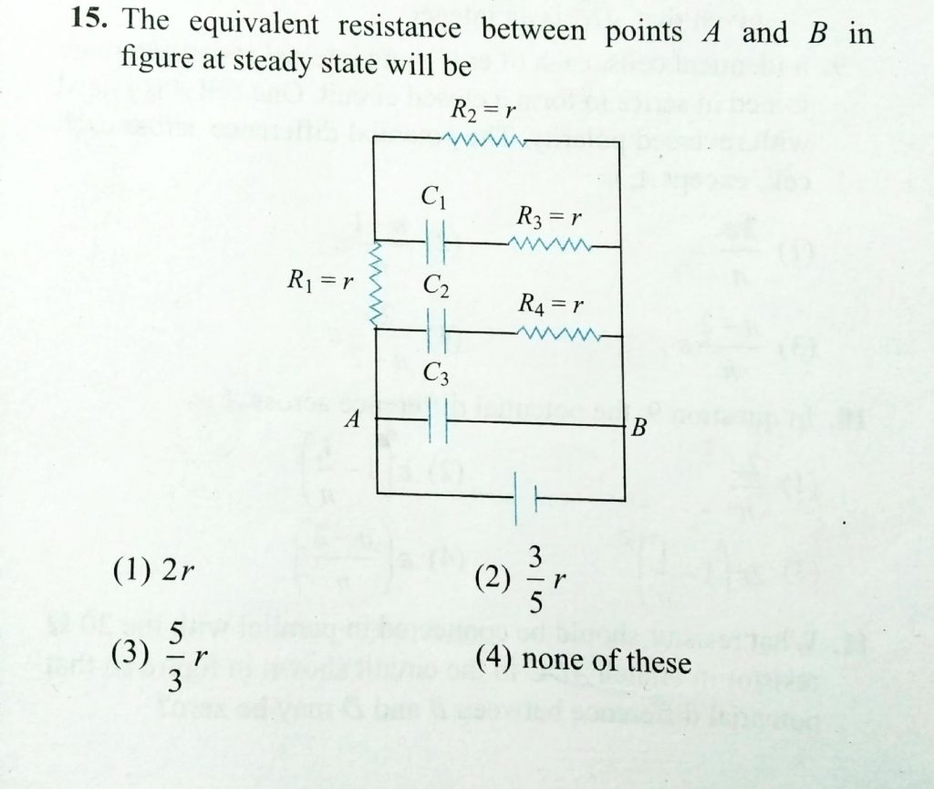 The equivalent resistance between points A and B figure at steady state will be The equivalent resistance between points A and B figure at steady state will be November 11, 2020 Category: Uncategorised (JEE Advanced Physics by BM Sharma + GMP Solutions) , Facebook Messenger WhatsApp Share this:TwitterFacebook Related