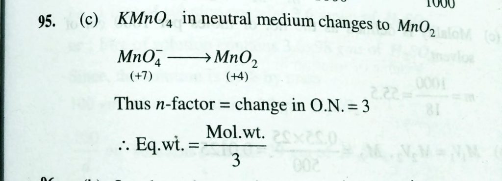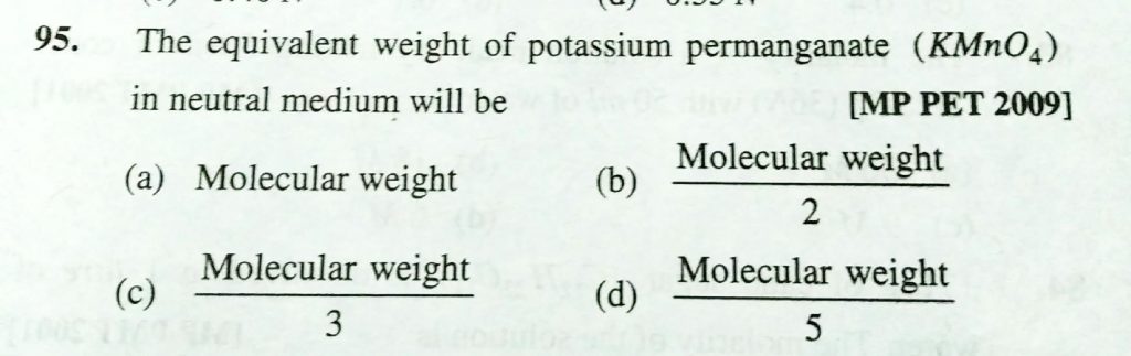 The equivalent weight of potassium permagnanate ( KMnO4 ) in neutral medium will be The equivalent weight of potassium permagnanate ( KMnO4 ) in neutral medium will be December 11, 2020 Category: Uncategorised (JEE Advanced Physics by BM Sharma + GMP Solutions) , Facebook Messenger WhatsApp Share this:TwitterFacebook Related