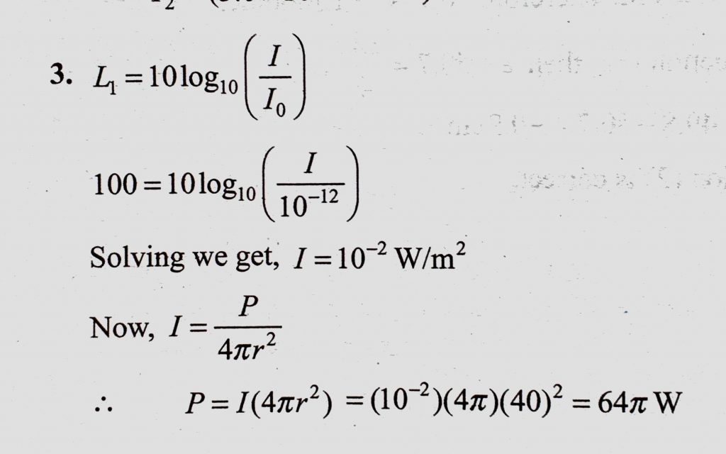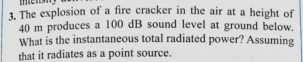 The explosion of a fire cracker in the air at a height of 40 m produces a 100 dB sound level at ground below. What is the instantaneous total radiated power ? Assuming that it The explosion of a fire cracker in the air at a height of 40 m produces a 100 dB sound level at ground below. What is the instantaneous total radiated power ? Assuming that it November 7, 2020 Category: Uncategorised (JEE Advanced Physics by BM Sharma + GMP Solutions) , Facebook Messenger WhatsApp Share this:TwitterFacebook Related