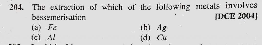 The extraction of which of the following metals involves bessemerisation (a) Fe (b) Ag (c) Al (d) Cu The extraction of which of the following metals involves bessemerisation (a) Fe (b) Ag (c) Al (d) Cu December 2, 2020 Category: Uncategorised (JEE Advanced Physics by BM Sharma + GMP Solutions) , Facebook Messenger WhatsApp Share this:TwitterFacebook Related