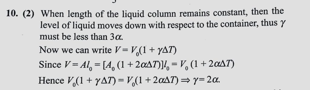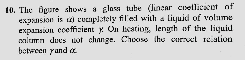 The figure shows a glass tube (linear coefficient of expansion is alpha) completely filled with a liquid of volume expansion coefficient gama. On heating, length of the liquid column does not change. length of the liquid column does not change. The figure shows a glass tube (linear coefficient of expansion is alpha) completely filled with a liquid of volume expansion coefficient gama. On heating October 23, 2020 Category: Uncategorised (JEE Advanced Physics by BM Sharma + GMP Solutions) , Facebook Messenger WhatsApp Share this:TwitterFacebook Related