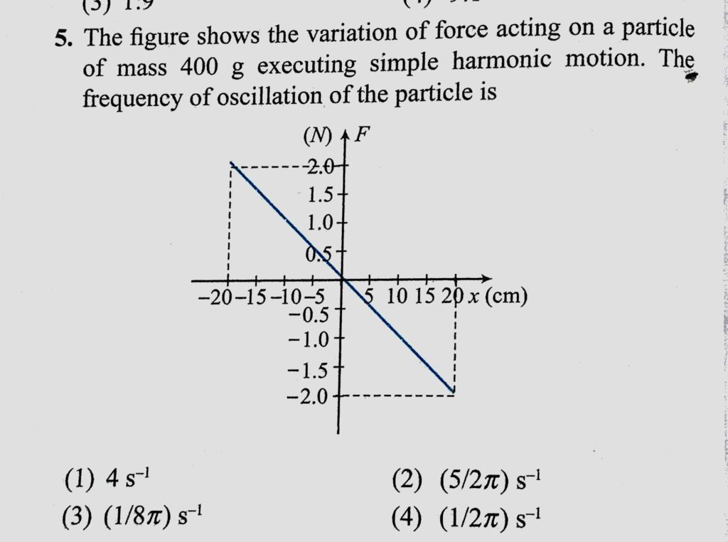 The figure shows the variation of force acting on a particle of mass 400 g executing simple harmonic motion. The frequency of oscillation of the particle is The figure shows the variation of force acting on a particle of mass 400 g executing simple harmonic motion. The frequency of oscillation of the particle is October 30, 2020 Category: Uncategorised (JEE Advanced Physics by BM Sharma + GMP Solutions) , Facebook Messenger WhatsApp Share this:TwitterFacebook Related