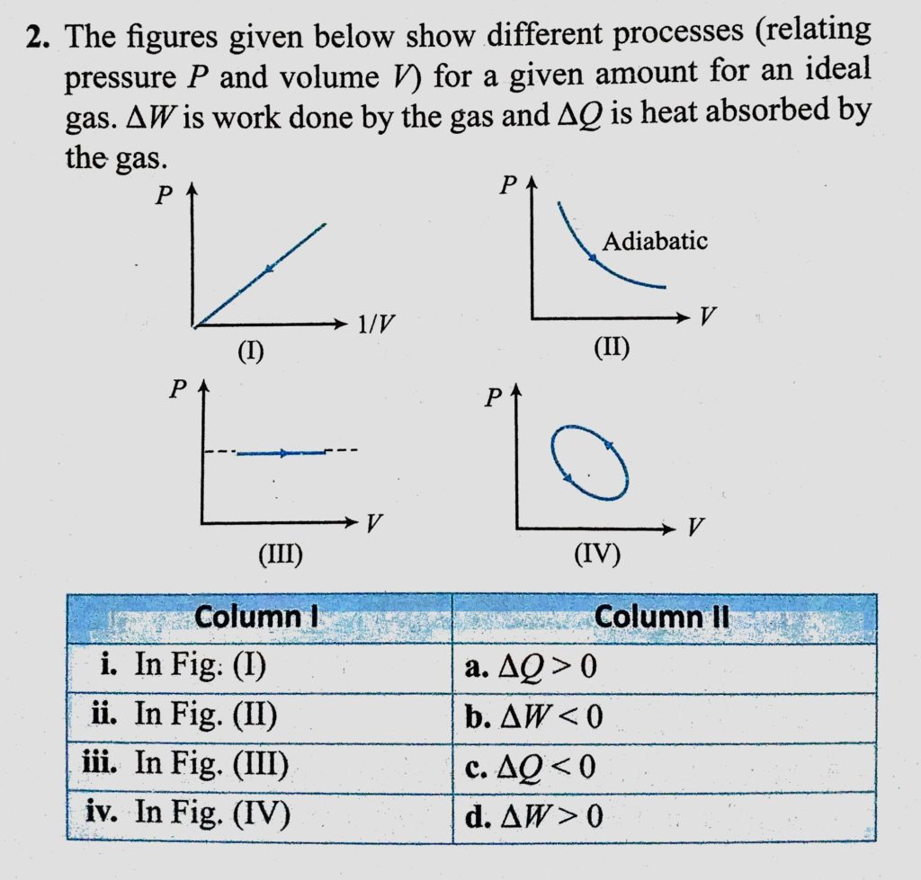 The figures given below show different processes (relating pressure P and volume V) for a given amount for an ideal gas. delta W is work done by the gas and delta Q is heat The figures given below show different processes (relating pressure P and volume V) for a given amount for an ideal gas. delta W is work done by the gas and delta Q is heat October 29, 2020 Category: Uncategorised (JEE Advanced Physics by BM Sharma + GMP Solutions) , Facebook Messenger WhatsApp Share this:TwitterFacebook Related
