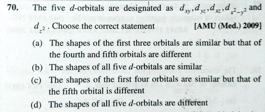 The five d – orbitals are designed as dxy, dyz , dxz, dx^2-y^2 and d2. Choose the correct statement dx^2-y^2 and d2. Choose the correct statement dxz dyz The five d - orbitals are designed as dxy November 28, 2020 Category: Uncategorised (JEE Advanced Physics by BM Sharma + GMP Solutions) , Facebook Messenger WhatsApp Share this:TwitterFacebook Related