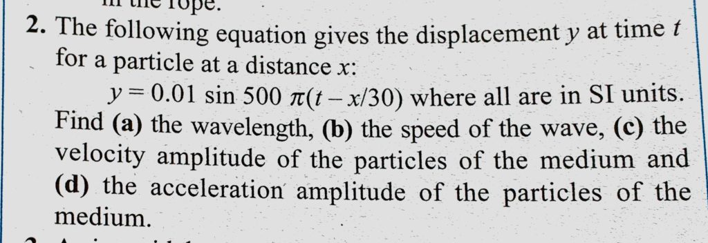 The following equation given the displacement y at time t for a particle at a distance x : y = 0.01 sin 500 pie (t -x/30) where all are in SI units. Find (a) the wavelength, (b) the speed of the wave, (b) the speed of the wave The following equation given the displacement y at time t for a particle at a distance x : y = 0.01 sin 500 pie (t -x/30) where all are in SI units. Find (a) the wavelength November 1, 2020 Category: Uncategorised (JEE Advanced Physics by BM Sharma + GMP Solutions) , Facebook Messenger WhatsApp Share this:TwitterFacebook Related