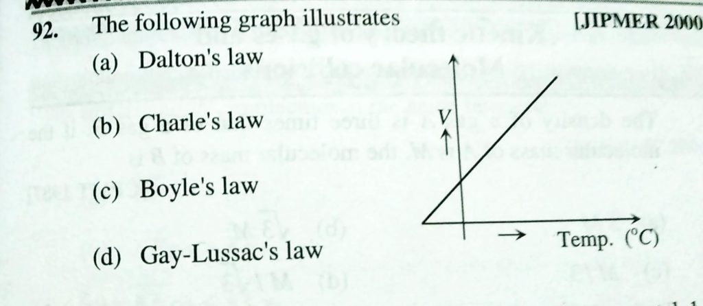The following graph illustrates (a) Dalton’s law (b) Charle’s law (c) Boyle’s law (d) Gay- Lussac”s law The following graph illustrates (a) Dalton's law (b) Charle's law (c) Boyle's law (d) Gay- Lussac''s law February 11, 2021 Category: Uncategorised (JEE Advanced Physics by BM Sharma + GMP Solutions) , Facebook Messenger WhatsApp Share this:TwitterFacebook Related