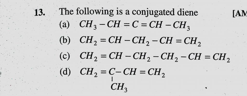 The following is a conjugated diene (a) CH3-CH=C=CH-CH3 (b) CH2=CH-CH2-CH=CH2 (c) CH2=CH-CH2-CH2-CH=CH2 The following is a conjugated diene (a) CH3-CH=C=CH-CH3 (b) CH2=CH-CH2-CH=CH2 (c) CH2=CH-CH2-CH2-CH=CH2 December 15, 2020 Category: Uncategorised (JEE Advanced Physics by BM Sharma + GMP Solutions) , Facebook Messenger WhatsApp Share this:TwitterFacebook Related