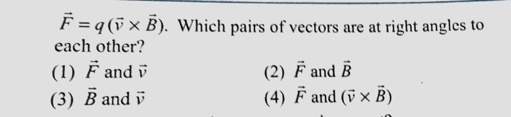 The force F experienced by a particle of chrage q moving with a velocity v in a magnetic field B is given by F = q ( v x B 0. which pairs of vectors are at right angles to each other ? The force F experienced by a particle of chrage q moving with a velocity v in a magnetic field B is given by F = q ( v x B 0. which pairs of vectors are at right angles to each other ? October 14, 2020 Category: Uncategorised (JEE Advanced Physics by BM Sharma + GMP Solutions) , Facebook Messenger WhatsApp Share this:TwitterFacebook Related